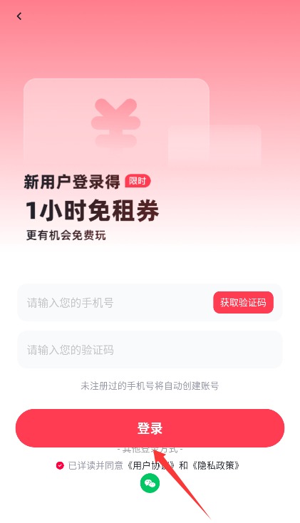 3、输入手机号获取验证短信,填写验证码并勾选协议后点击登录完成认证。