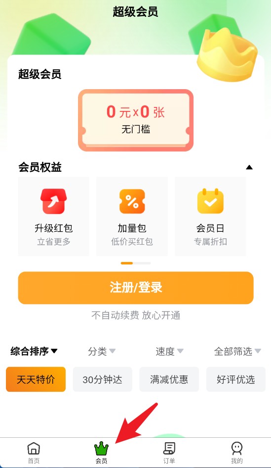 3、点击底部会员图标进入会员中心,可查看会员权益、升级礼包、专属折扣等功能内容。