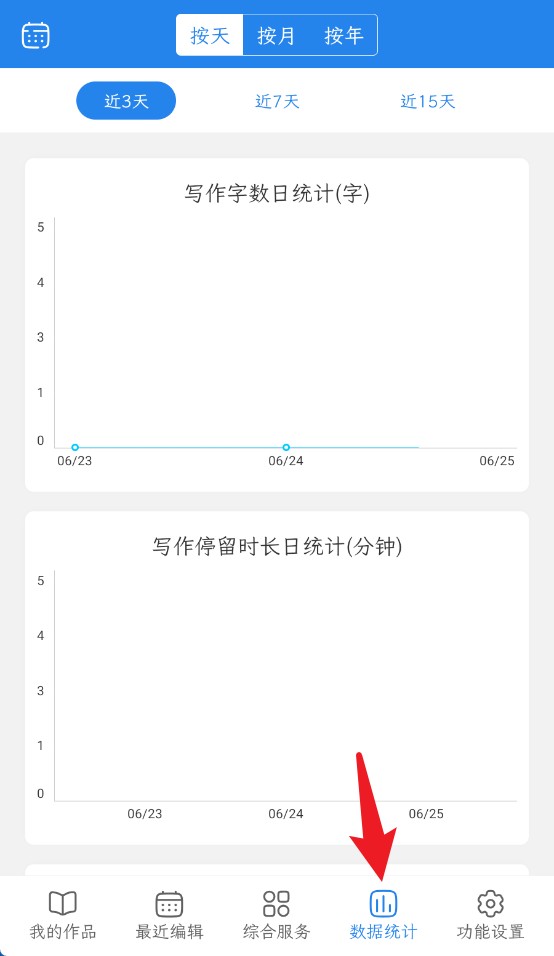 4、数据统计功能可查看每日写作字数和停留时间,帮助用户掌握创作规律。
