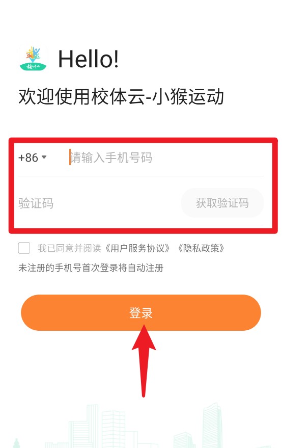 1、输入手机号并获取验证码,勾选协议后点击登录按钮,即可进入校体云平台。