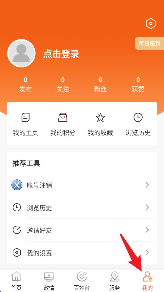 5、点击我的按钮可登录账号,查看个人积分、收藏、历史记录和账号设置等内容。