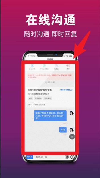 3、进入沟通界面可与企业在线聊天,支持实时消息回复,提升沟通效率与成功率。
