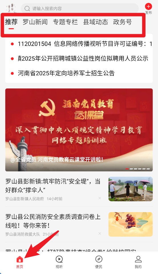 1、首页提供推荐新闻、县域动态和政务号内容,是了解本地资讯的重要入口。