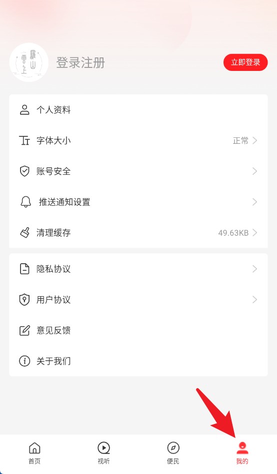 4、我的模块中可查看账号资料、修改字体与推送设置,支持反馈与清除缓存。