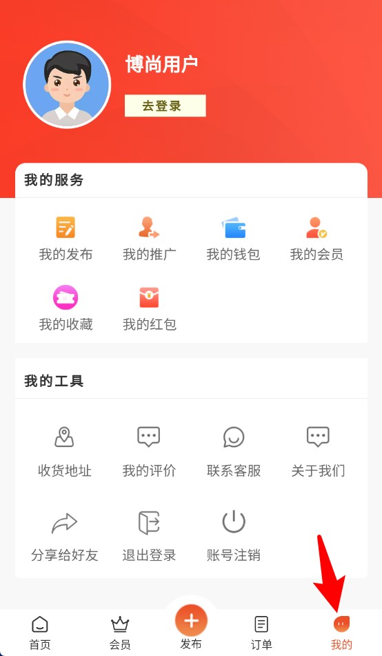 5、点击底部我的,可管理个人资料、订单、钱包、收藏、收货地址等常用功能。