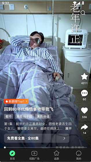 1、在发现界面上下滑动屏幕切换短剧