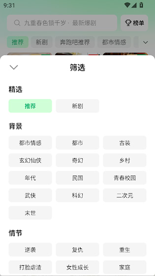 2、分类筛选更高效:点击顶部题材标签(如“都市”“古言”),可集中浏览特定类型内容,避免信息过载。