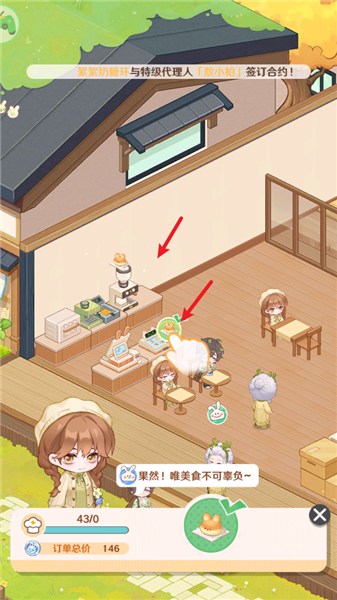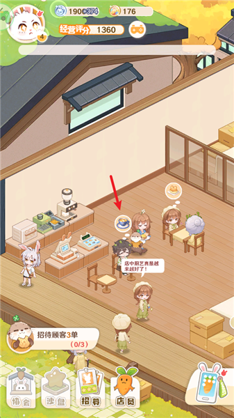 1、经过开头的一小段剧情之后,客人到达后,点击头上的图案即可点单。