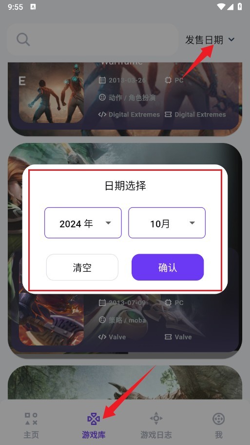 4、游戏库汇聚大量游戏资源,在该界面还能按发售日期查阅各类游戏产品。