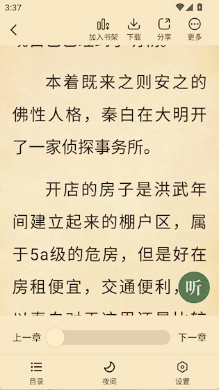 4、听书功能加持:新增语音朗读功能,可在不方便看屏幕时通过听书继续享受内容,解放双眼,提升使用便利性。
