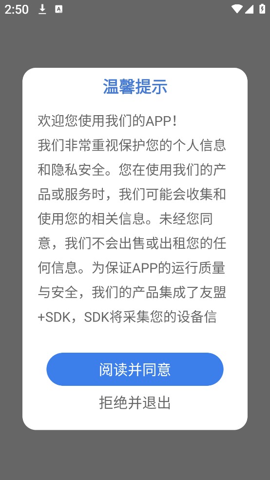1、下载最新版本软件,进入过程中需先同意隐私权限。