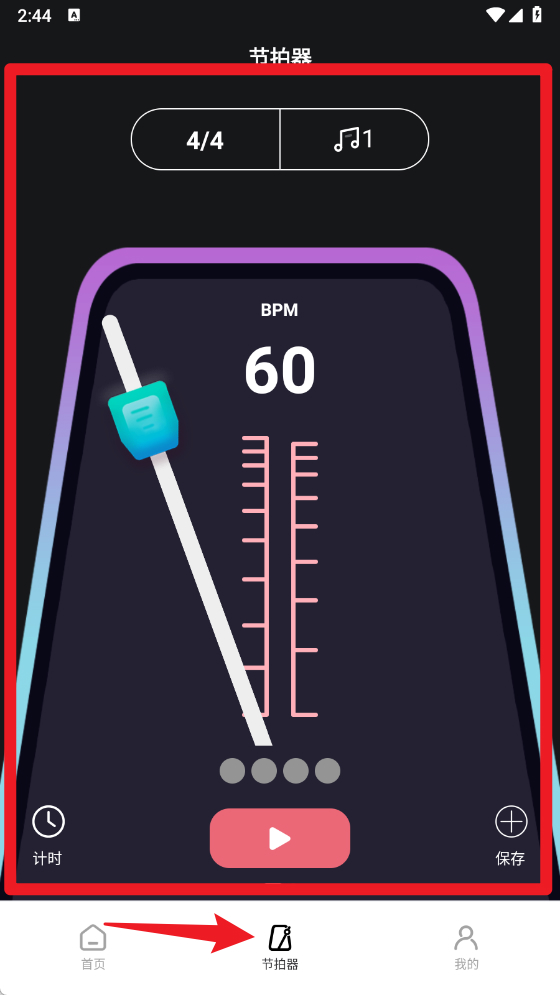 4、在节拍器板块,用户可以通过调节节拍速度,进行节奏感和拍子感的练习。