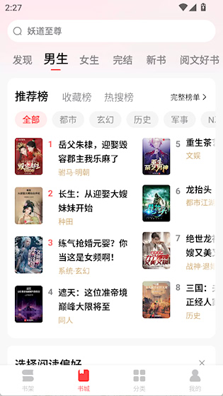 1、在书城里选择一部作品开始阅读