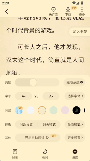 2、睡前放松阅读习惯:开启夜间模式,在柔和背景下安静读几章,帮助入眠又不伤眼。
