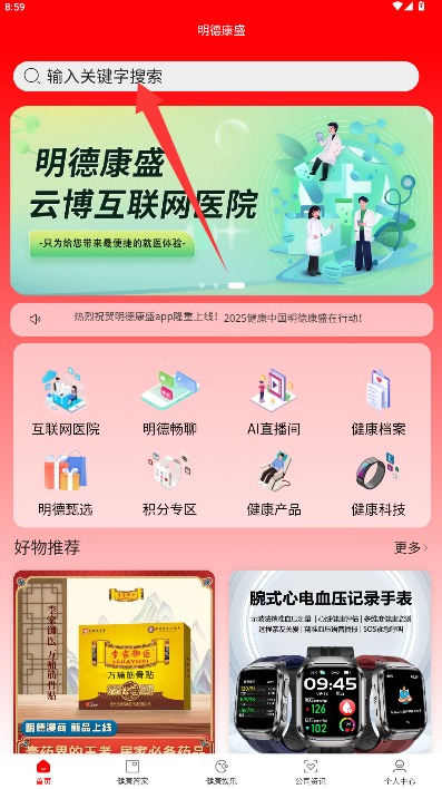 明德康盛app是一款结合了健康购物、管理功能的软件。内部上架了许多种健康商品,可以根据需求随时下单购买。互联网医院服务方便直接咨询专业医生,省去了前往医院排队等候的环节。使用者通过日常使用累积积分,可以用于换取各类实用礼品。它目前支持建立个人健康档案,方便持续记录、查阅身体状况信息。