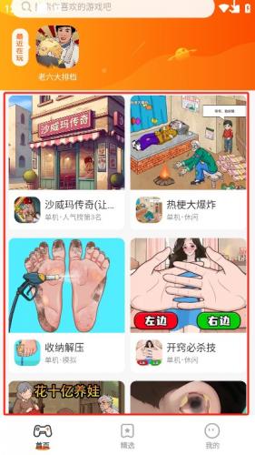 3、主界面与精选板块会呈现推荐游戏,滑动屏幕可浏览各类游戏。