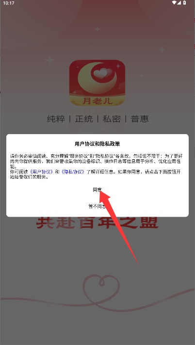 1、初次使用需阅读用户协议与隐私政策,确认无误后点击同意按钮进入登录界面。