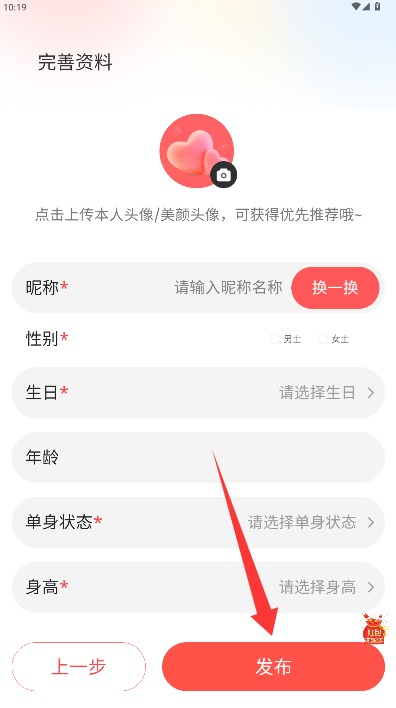 3、上传个人头像照片并完善昵称信息、年龄数据等基本资料,确认后保存个人资料内容。