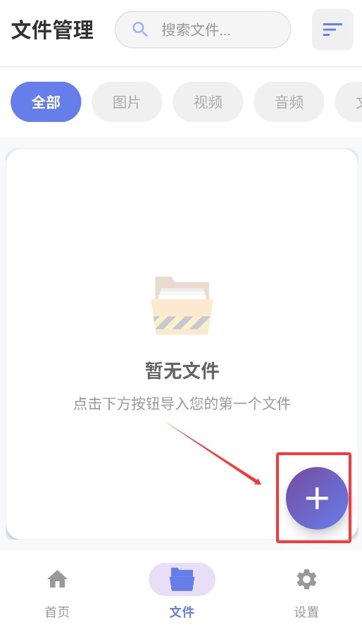 4、通过文件管理功能,点击右下角添加按钮即可导入本地文件进行安全存储。