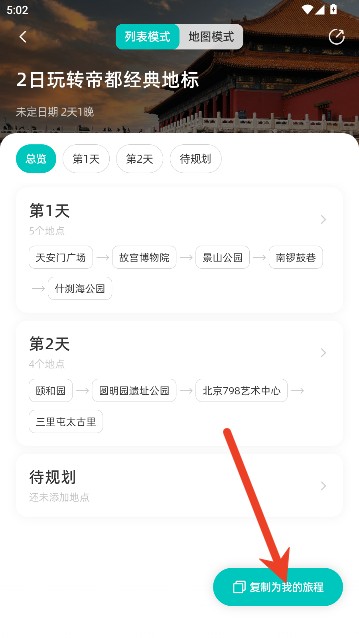 4、点击页面下方的复制为我的旅程按键,还能编辑时间地点等信息