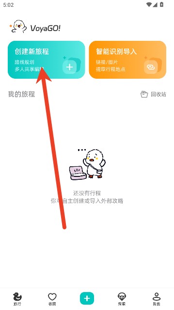 1、进入VoyaGO,点击旅行页面中的创建新旅程选项