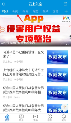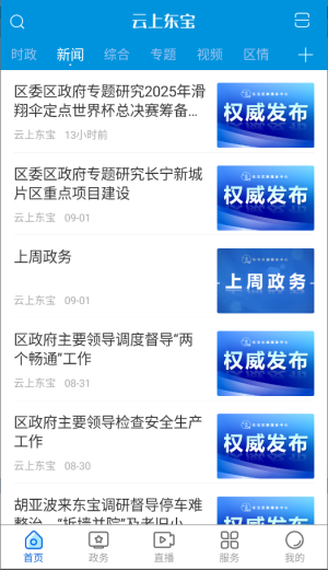 2、在首页导航栏选择东宝新闻栏目,浏览本地最新时事动态和政策解读。