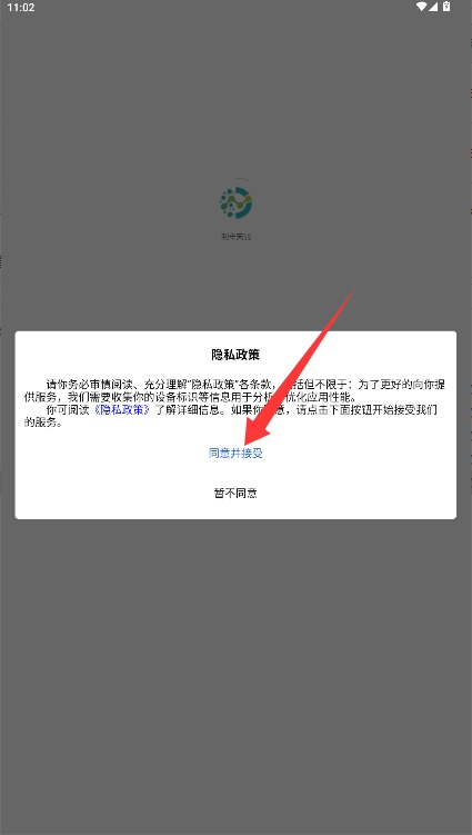 1、初次使用需阅读平台服务条款与隐私政策,确认后点击同意并接受按钮进入。