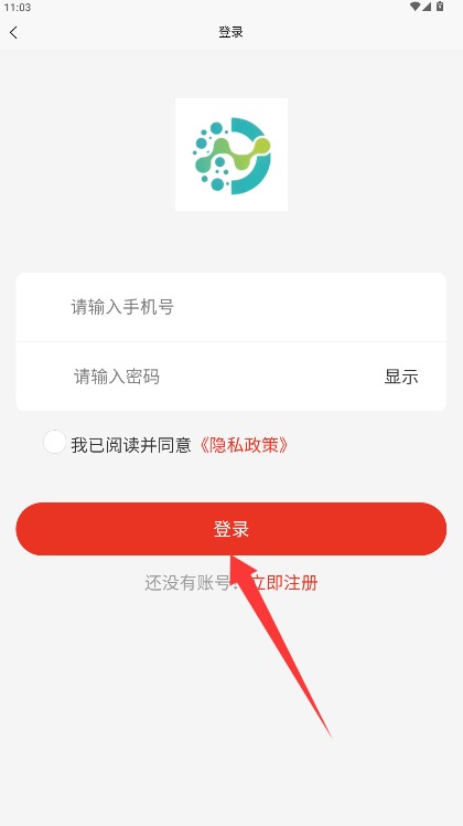 2、在登录页面输入手机号和登录密码,勾选同意相关条款后点击登录进入应用。