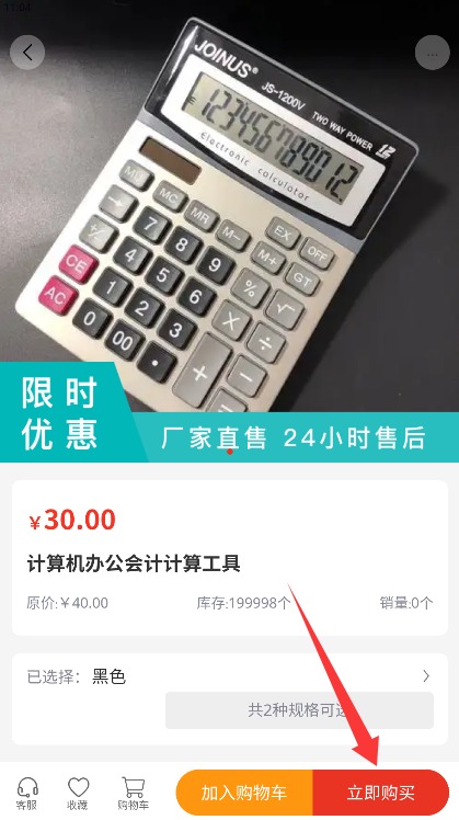 4、进入商品详细信息界面后,点击页面右下角立即购买按钮即可完成订购流程。