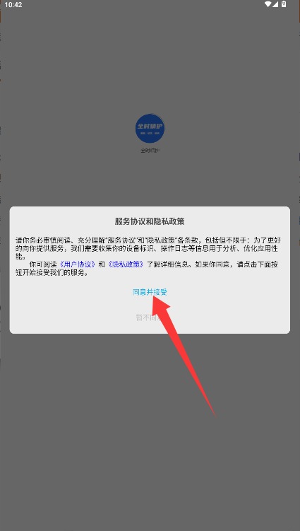 1、初次使用需阅读用户协议与隐私政策,确认无误后点击同意并接受按钮进入。