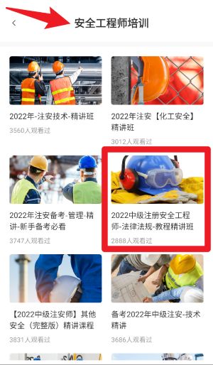 3、点击安全工程师培训分类后可浏览精选课程,选择感兴趣的班次进行深入学习和备考复习。
