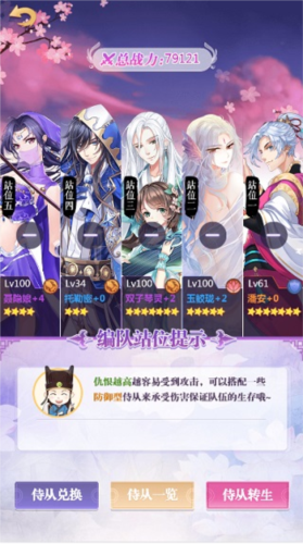 3、侍从(1级开启):在侍从界面可以通过升级、升星、点技能、血脉关联、装备进阶、封印、九字真言等方式培养侍从,从而提升侍从的战力,在战斗中取胜。
