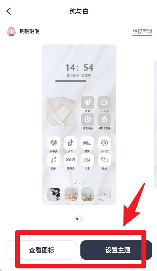 3、在主题详情页,用户可以查看图标样式或直接点击设置主题,将所选主题快速应用到桌面,体验个性化效果。
