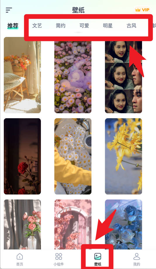 5、在壁纸专区,分类同样涵盖文艺、简约、明星、古风等风格,用户可轻松切换壁纸,打造独一无二的桌面美感。