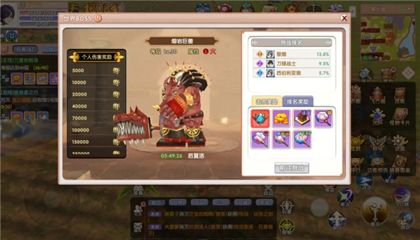 4、世界BOSS战:每天19:00开启,归属判定看 “总伤害占比” 和 “最后一击” 。全力输出,争取总伤害占比≥30%并打出最后一击,有机会获红装奖励。