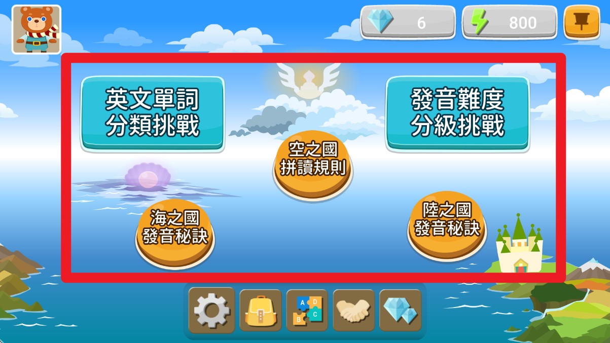 1. 从主界面进入后,点击上方英文单词分类挑战或发音难度分级挑战,即可进入学习地图选择不同发音练习模式。
