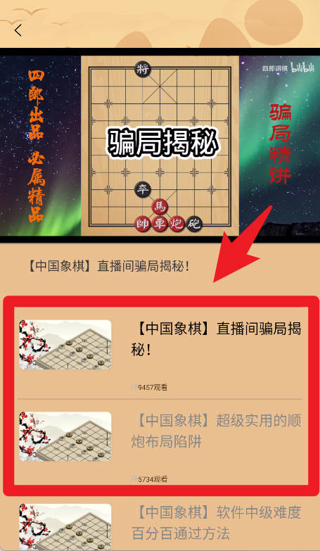 3、在课程内容页面中,包含了多种主题讲解,例如揭示象棋骗局的课程,用户可以逐步掌握象棋中常见的实用技巧和应对方法。