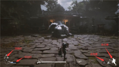 体力值:与魂系游戏类似,悟空在翻滚、攻击时,会消耗一定的体力值,在没有以上动作时,体力值会缓缓恢复。但似乎游戏中的体力消耗并不大,我在视频中并没有看到体力值耗尽的情况发生。