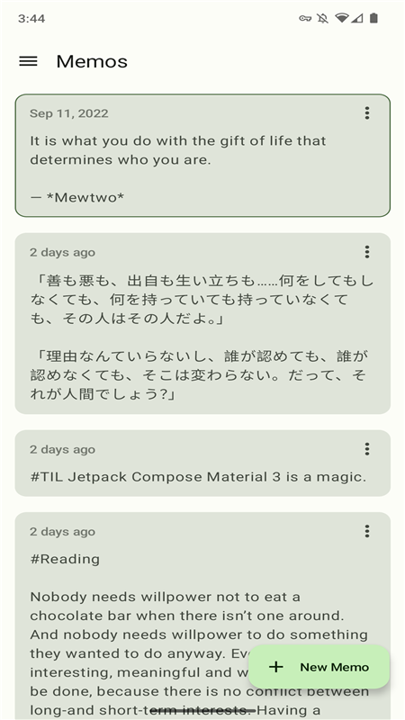 - 包名:me.mudkip.moememos