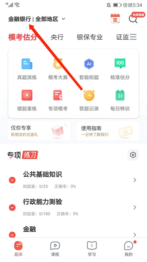 4、返回应用主页,可见左上角考试目标与报考地区,省考设置完成。