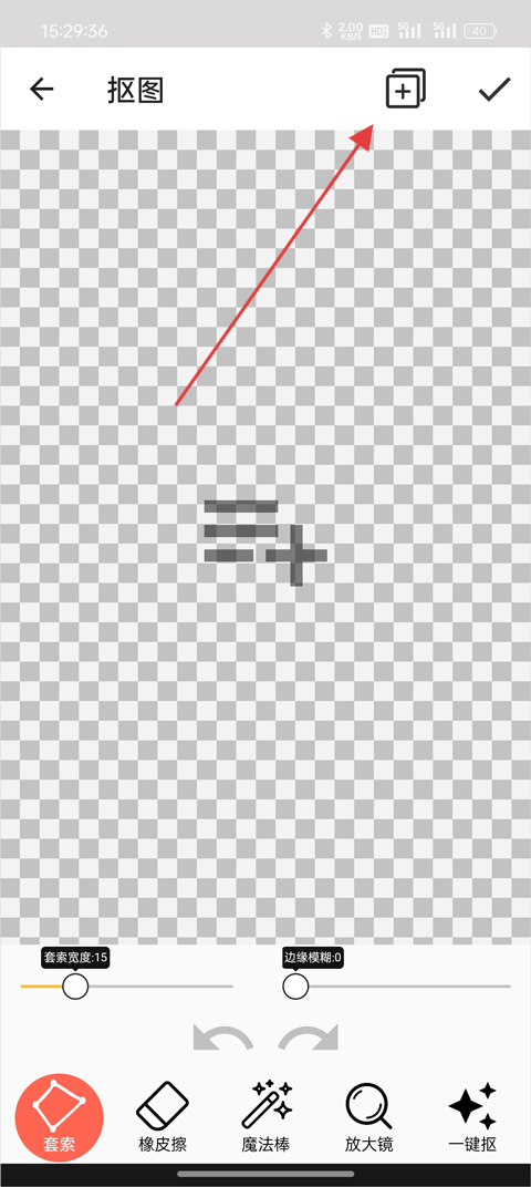 1、选中需抠图的图片,点击图片内或右上角的加号按钮。