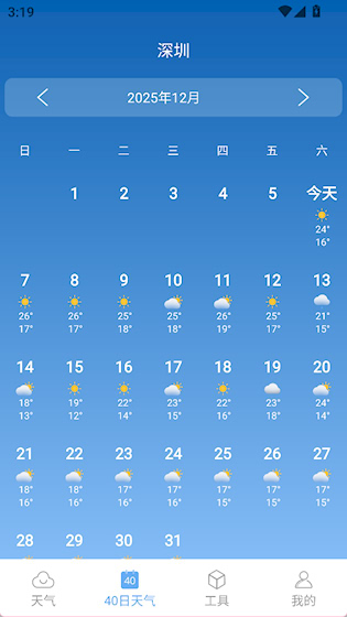 2、精细时段预报:提供未来24小时及长达40天的天气趋势,每个小时的降水概率和气温变化都一目了然。