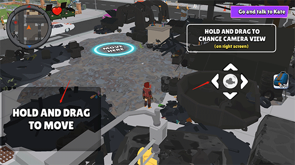 1、使用左边遥感操控角色的移动,右边调整视角