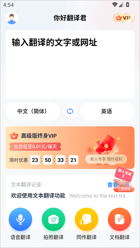 1、在本站下载安装你好翻译君app,打开后选择所需翻译功能;