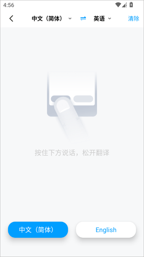 3、长按话筒按钮开始说话,松开按钮后即可生成对应译文;
