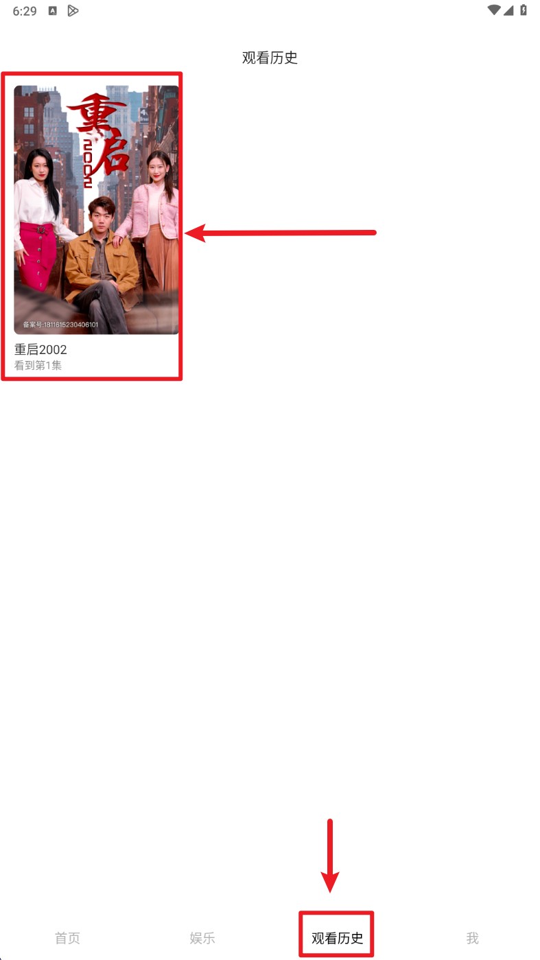 4. 点击底部观看历史可查看已看过的内容,方便继续从上次进度接续观看。