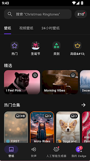 Zedge是一款专注于手机个性化的壁纸应用,提供大量免费高清壁纸、动态照片、铃声等内容,可以轻松为手机主屏或锁屏更换背景,也能为联系人设置专属铃声,让设备更贴合个人风格,资源种类丰富,涵盖多种主题,操作简单直观,方便随时调用喜爱的内容。