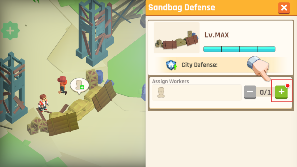 3、在界面点击工人栏的【+】,分配工人以提升该防御设施的效果。