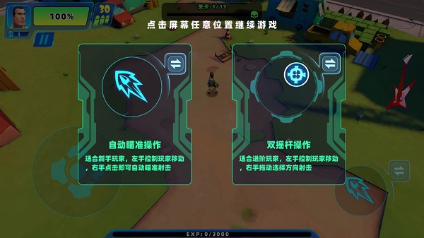 在这里你需要保持移动坚持生存下去,坚持的越久获得奖励越丰富。但首先你要选择最喜欢的操作方式。