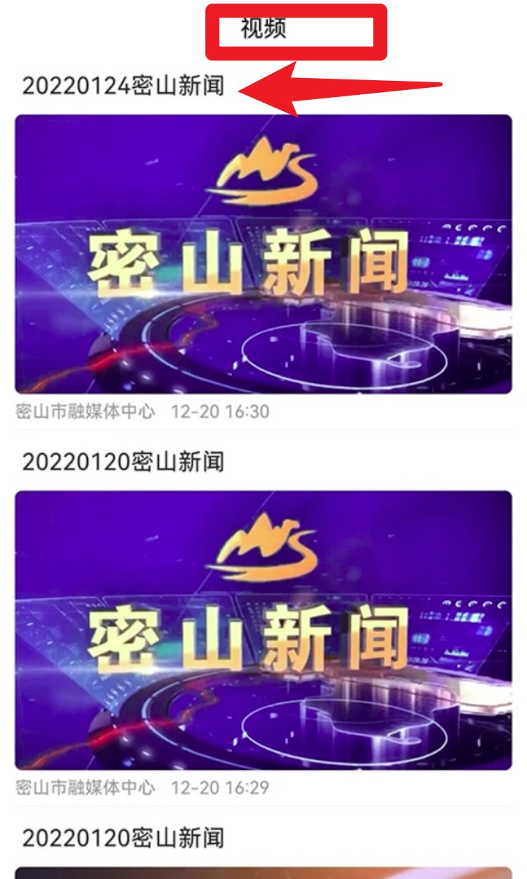 3. 进入视频频道后,可回看《密山新闻》视频内容,支持按日期浏览各期本地电视新闻节目。